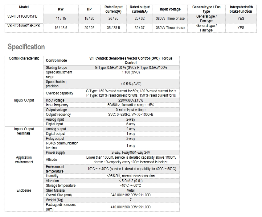 1. Output frequency range:SVC: 0-320Hz;V/F:0-1000Hz,increase 60% on the basis of 8000B series.
