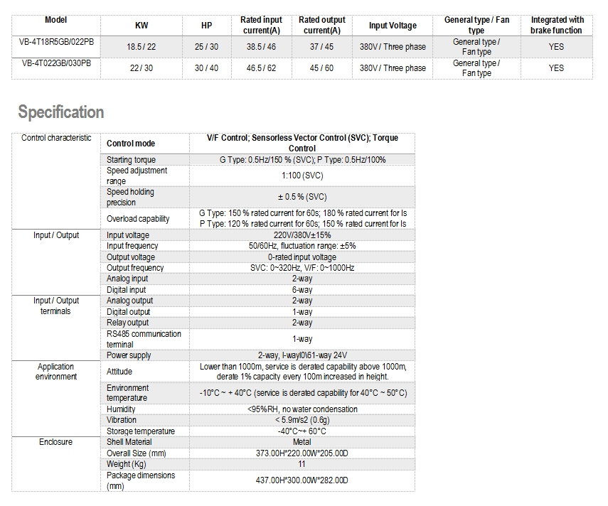 1. Output frequency range:SVC: 0-320Hz;V/F:0-1000Hz,increase 60% on the basis of 8000B series.