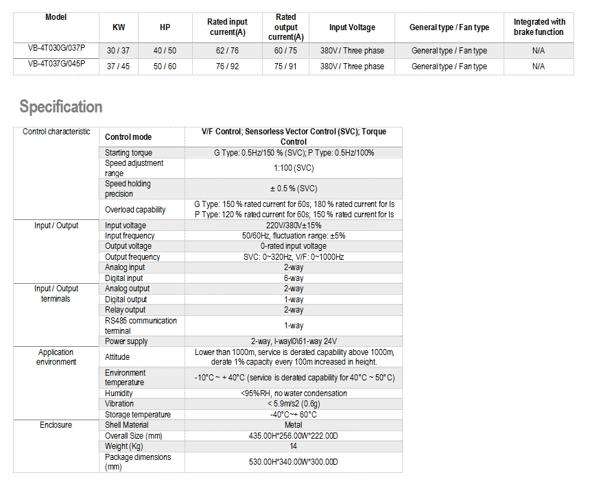 • Model: VB-4T037G/045P