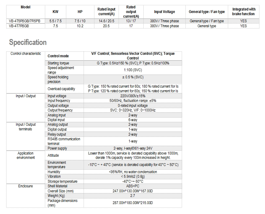 1. Output frequency range:SVC: 0-320Hz;V/F:0-1000Hz,increase 60% on the basis of 8000B series.