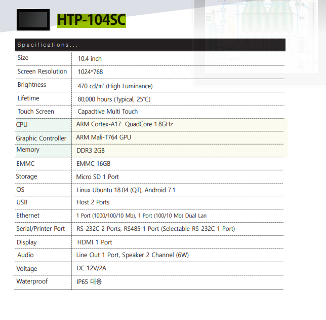 Capasitive 10.4" Touch Panel, ARM Cortex A17 QuadCore 1.8GHz, RAM 2GB,
