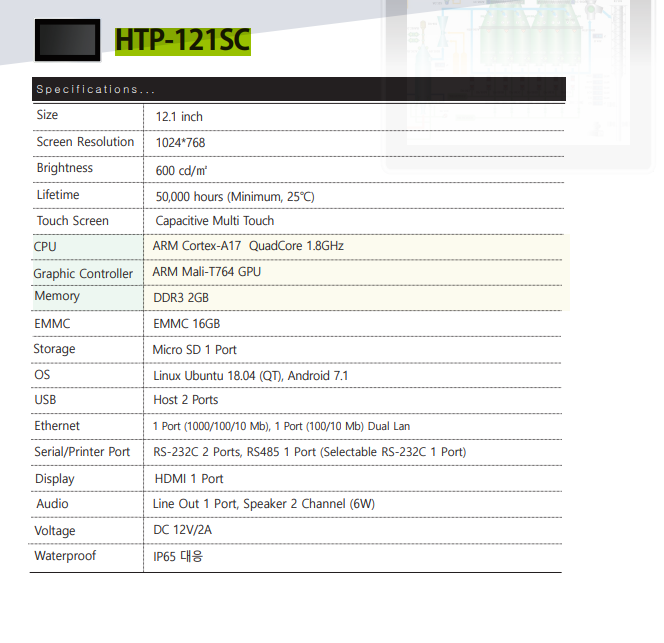 Capasitive 12.1" Touch Panel, ARM Cortex A17 QuadCore 1.8GHz, RAM 2GB,